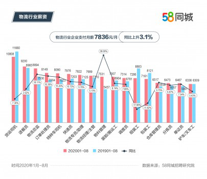 薪酬水平也是物流行業(yè)就業(yè)的重要指標,58同城招聘研究院數(shù)據(jù)顯示,今年1-8月,交通運輸、倉儲和郵政業(yè)支付月薪達到7836元,同比上升3.1%。典型職位中,貨運司機支付月薪第一,達到10808元;送餐員支付月薪排名第二,為9200元;物料管理支付月薪同比上升最快,增幅38%,月薪達到7531元??梢?,物流行業(yè)崗位薪資與崗位技術(shù)含量、市場需求、勞動強度密切相關(guān),技術(shù)含量高、市場需求大、勞動強度大的崗位收入更高。