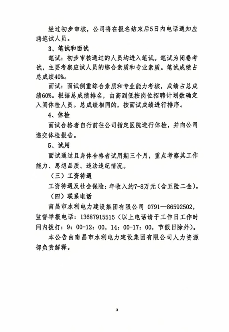 南昌市水利電力建設(shè)集團(tuán)有限公司2024年面向社會(huì)公開招聘工作人員公告